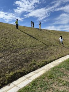 蝶々やバッタを見つけては走り回りながら、南浜津波復興祈念公園内を周遊して、、立ち止まっては、森の話をしたり、生き物の話をしたりしました。