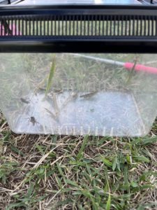 網でとったバッタを「怖くて触れない!」と言われ、親が必死で捕まえてカゴの中に入れますが、逃げられる…を繰り返してました。