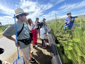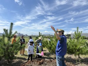 蝶々やバッタを見つけては走り回りながら、南浜津波復興祈念公園内を周遊して、、立ち止まっては、森の話をしたり、生き物の話をしたりしました。