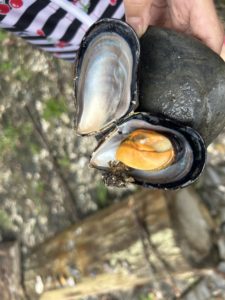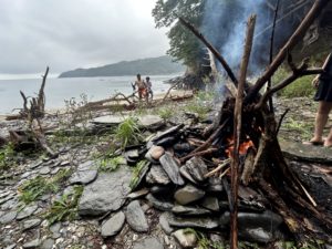 焚き火の火で貝を焼いて食べたりと満喫♪