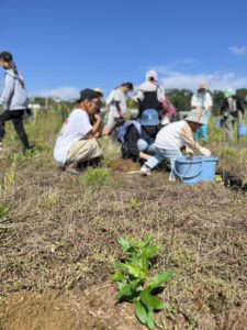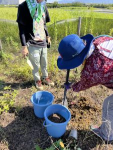 公園内に以前植えた苗木ちゃんは、今年の暑さで枯れている所もあり、そこにまた新しい苗木ちゃんを植え直していきました。6月に植え替えしたニシキウツギの苗木ちゃんもここで出番です。ピクニックアースの皆さんに手際よく植えられていき、お子さんも一生懸命、植えてくれました