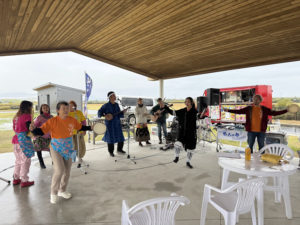 お天気は…一日中雨でした。公園内の東屋で、規模を縮減して行われました。
