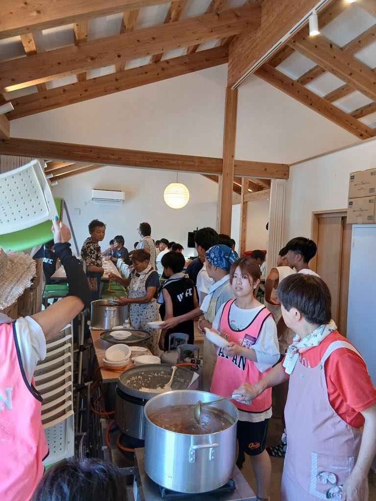 住民さんたちとサッカー少年たちが夏野菜カレー100食を