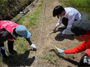 TEAM JAPANはこれまでに田んぼ周りの草刈りや