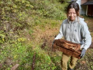冬を超える前に、大量の薪を家屋の外に運んで整理する活動の日でした。