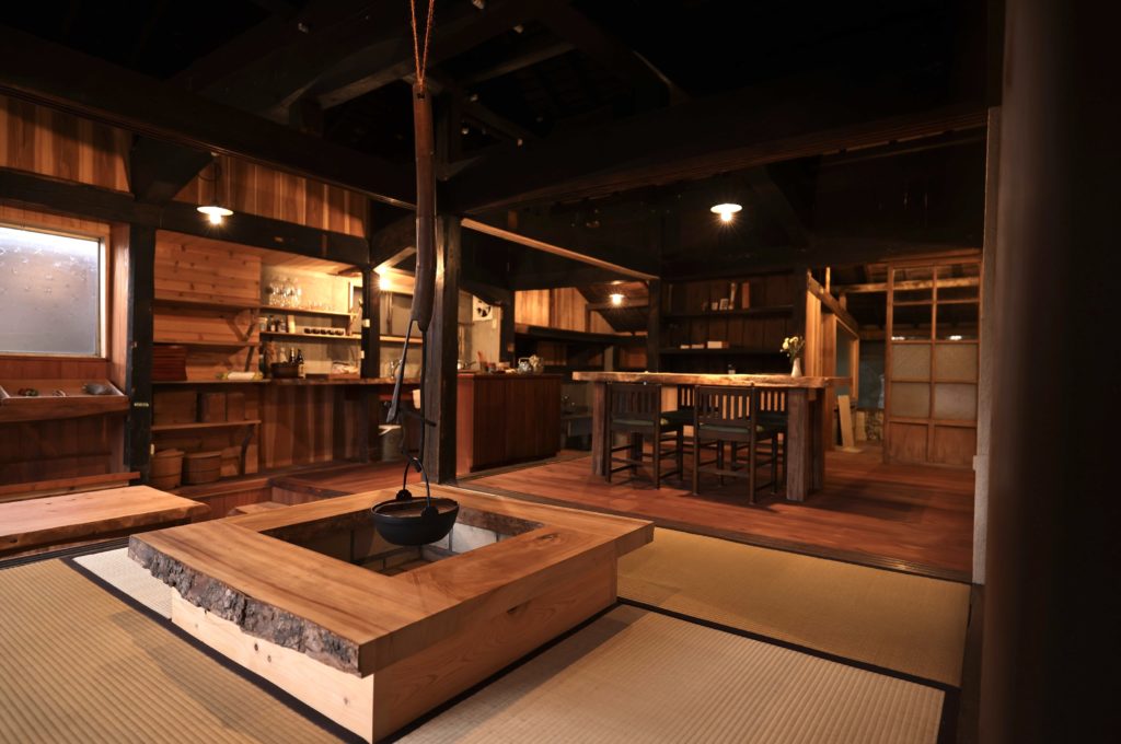 囲炉裏、かまど、焚き風呂を備えた「あうわ」。